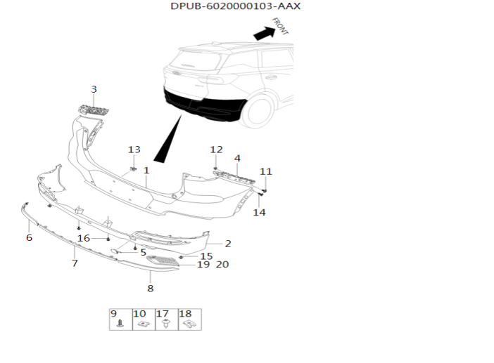 Rear Bumper Right Exhaust Trim Assembly / 20 quantity